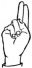 На ћирилици написано БИСЕРКА МИОКОВИЋ састоји се из 15 слова [?]. Исписано ћириличном једноручном азбуком за глувонеме: